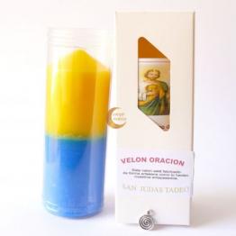 Velón consagrado a San Judas Tadeo, uno de los Santos más populares, por los numerosos favores celestiales que consigue a los devotos que le rezan con Fe.
