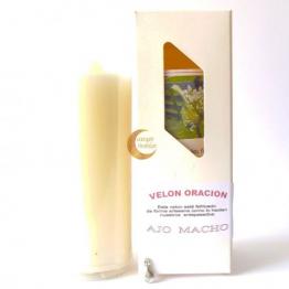 Velón Oración Ajo Macho ( con amuleto) Velón de hierbas naturales y esencias ritualizadas extraídas de antiguos grinomios. El Velón Ajo Macho se usa para peticiones de protección y limpieza así como  aumentar clientela y atraer el dinero.
