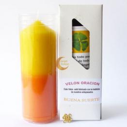 Este velón está especialmente preparado de manera litúrgica siguiendo la tradición ancestral para atraer la buena suerte en todos los aspectos, bien sea a nivel económico, estudios y amor tras épocas en las que todo parece ir mal, que sentimos que tenemos los caminos cortados, crisis económica y/