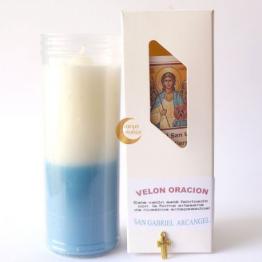 Este velón  consagrado a San Gabriel Arcángel está indicado para personas que necesitan recibir noticias de alguien, para mujeres embarazadas que desean una protección durante el embarazo, para tener un buen parto y para que acompañe al bebé en sus primeros meses de vida y lo proteja.