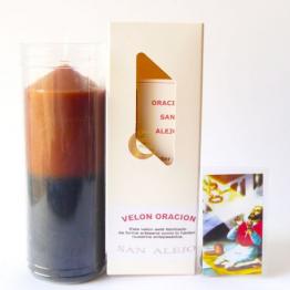 Este velón está consagrado litúrgicamente a San Alejo. Se enciende ante peticiones de destierro, alejamiento de personas o situaciones molestas, malas energías y elimina terceras personas de nuestra pareja. Se realiza en rituales de Alta Magia Blanca y religiosos.